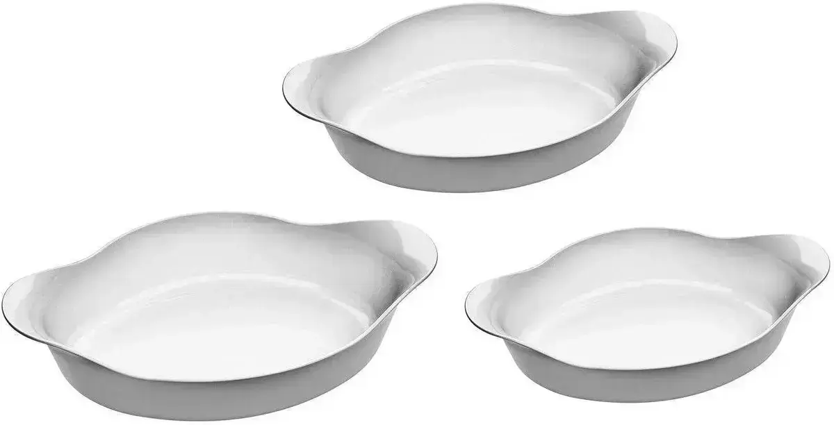- Conjunto com 3 assadeiras ovais: 1,4L, 1L e 0,6L